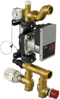 Grupo de impulsión marca Uponor, modelo PUSH-23-B-W, para control de temperatura constante de impulsión a colectores, con válvula termostática y las siguientes características técnicas: • Posible conexión a colectores Uponor • Incorpora la bomba Grundfos Alpha 2L 15-60, , para caudales entre 0,1 y 2,5 m³/h y una altura entre 6 y 2,4 mca respectivamente. • Conforme a la nueva Normativa Europea (EUP). • Válvula termostática con sensor capilar (20-55 °C) • Termómetro en impulsión • Válvulas de retorno • Conexión a primario ¾"" • Conexión a secundario 1" (para unión al colector Uponor 1"") • Temp. Max. Primario: 90 ºC • Temp. Max. Secundario: 55 ºC • Presión Max.: 10 bar • Kvs válvula termostática impulsión: 1,2 m3/h • Kvs válvula equilibrado retorno: 2,7 m3/h • Control proporcional de presion Cód.1078304