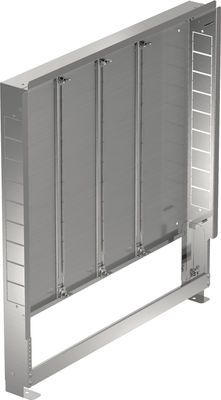 Caja para alojamiento de colectores modulares Uponor Vario IW de 10 a 11 salidas/circuitos, compatible con todos los marcos/puertas IW, de altura ajustable entre 730 y 930 mm, anchura 850 mm y 80 mm de profundidad, fabricada en chapa galvanizada. Medida la unidad instalada Cód.1093499