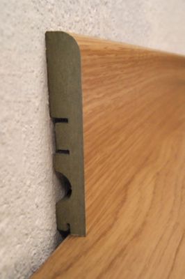 Zócalo de líneas modernas con canal pasacables. Disponible en dos alturas 7 y 9 cm.